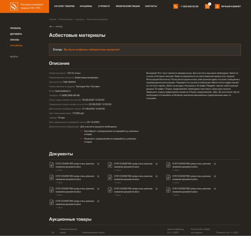 Создание портала/маркетплейса для продажи неликвидной и непрофильной продукции ПАО «ТМК» и проведения процедур электронных торгов.